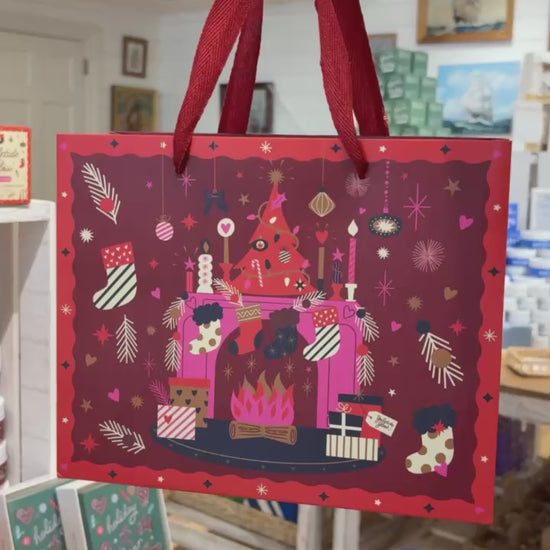 Features original artwork by Lulu Dubreuil for a festive holiday, winter, and Christmas gift bag! Perfect for Christmas and holiday gifting, this bag turns every gift into a voyage of festive delight. Pair it with matching Yuletide Glow items for a complete holiday escape!