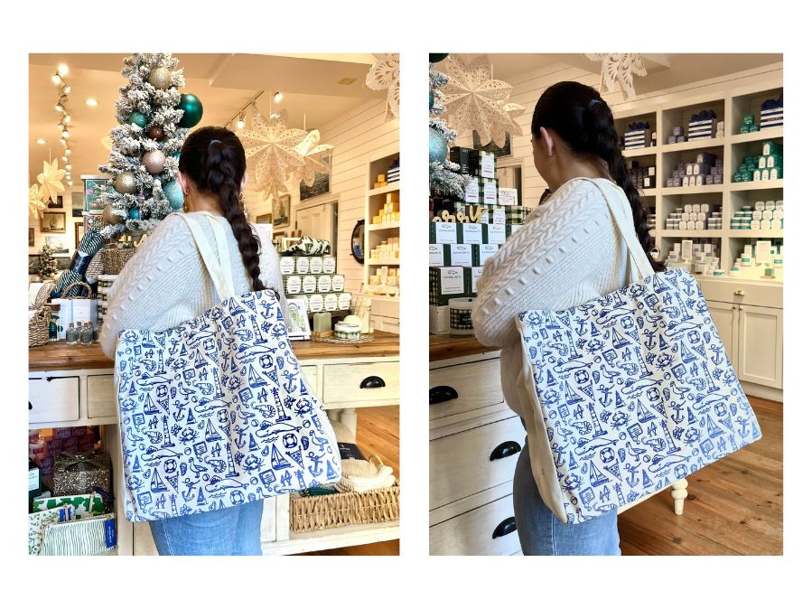 I am so glad I bought this tote! It is the perfect size for a short overnight trip and can hold everything I need. The pattern is absolutely beautiful, and I love repping the Old Whaling Co brand!